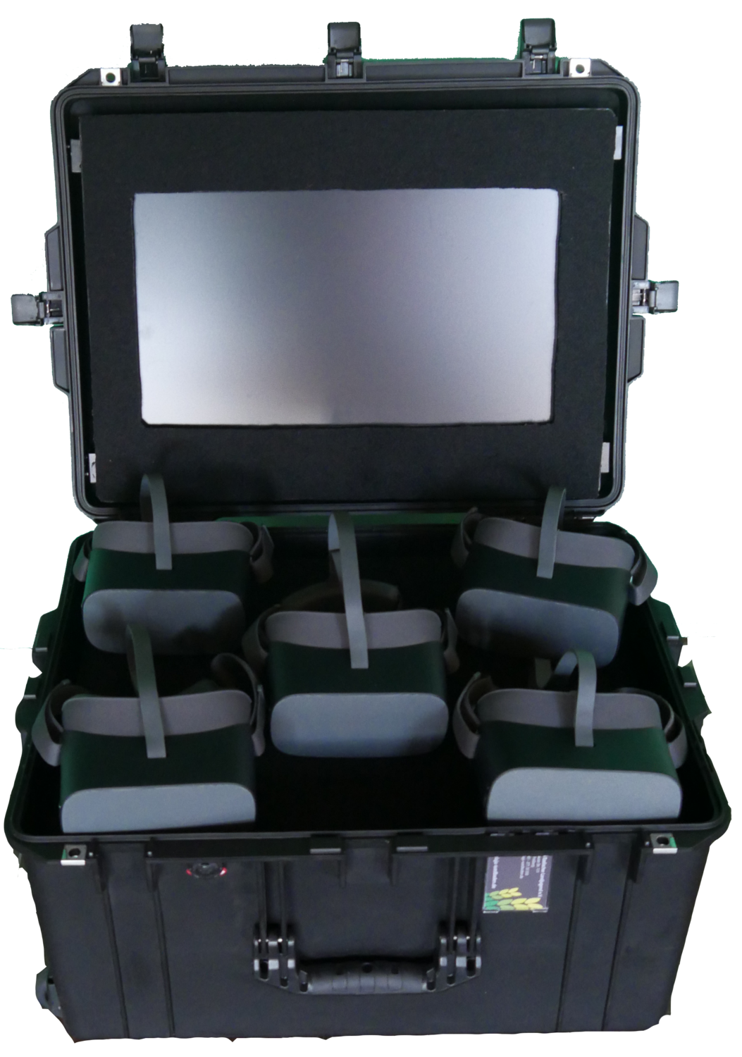 Der Koffer ist mit 8 VR-Brillen und einem koppelbaren Monitor ausgestattet, der die Sicht einer VR-Brille überträgt. Mit jeder Brille können alle 4 Betriebe besichtigt werden. Die Ausleihe ist kostenlos, ein Pfand von 150.- € ist zu hinterlegen.